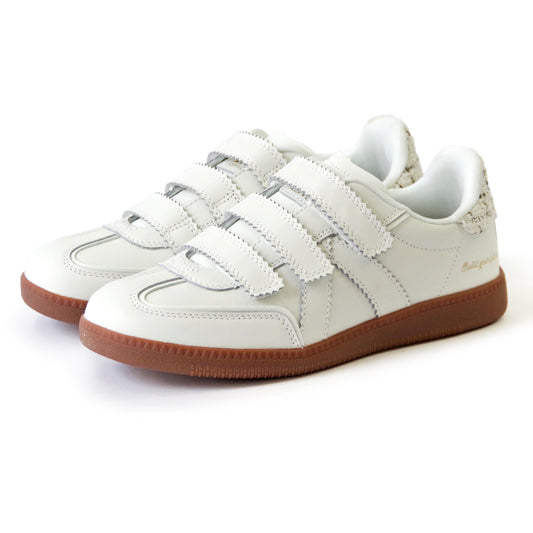 ヴィーガンレザー×ベルクロ使用で履きやすい大人カジュアルスニーカー着脱が簡単!なのにスタイリッシュなELITE CLASSIC VELCRO(エリートクラシックベルクロ)が新登場!人気モデル「ELITE CLASSIC(エリートクラシック)」のデザインをベースに、アッパーを履きやすいベルクロストラップ仕様にアップデート。シューレース不要でスムーズに脱ぎ履き出来て、自分の好きな足幅に合わせて履けるのでストレスフリー。 アッパーには環境に配慮したヴィーガンレザーを使用し、履き心地柔らか。ヒール部分にはツイードやレオパード柄など異素材を組み合わせることで、足元に遊び心をプラス。クラシックなフォルムのガムソールは滑りにくく、クッション性の高いインソールで、安定感と歩きやすさも兼ね備えています。大人カジュアルコーデやデイリーコーデをちょっとワンランクUPできる、楽ちんだけどオシャレな一足です。