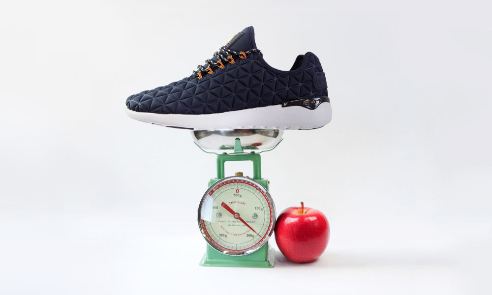 手に持った瞬間に履いてみたくなるような特別に軽くて快適なシューズを目指して。ASFVLTの代表的なモデルSPEED SOCKS NEOは重さが約180gとそれは小さめのりんご1個とほぼ同じ。街へ出かけて新しいものを発見する、そんな楽しさを忘れないように軽快であることを 楽しむ靴を作り続ける。