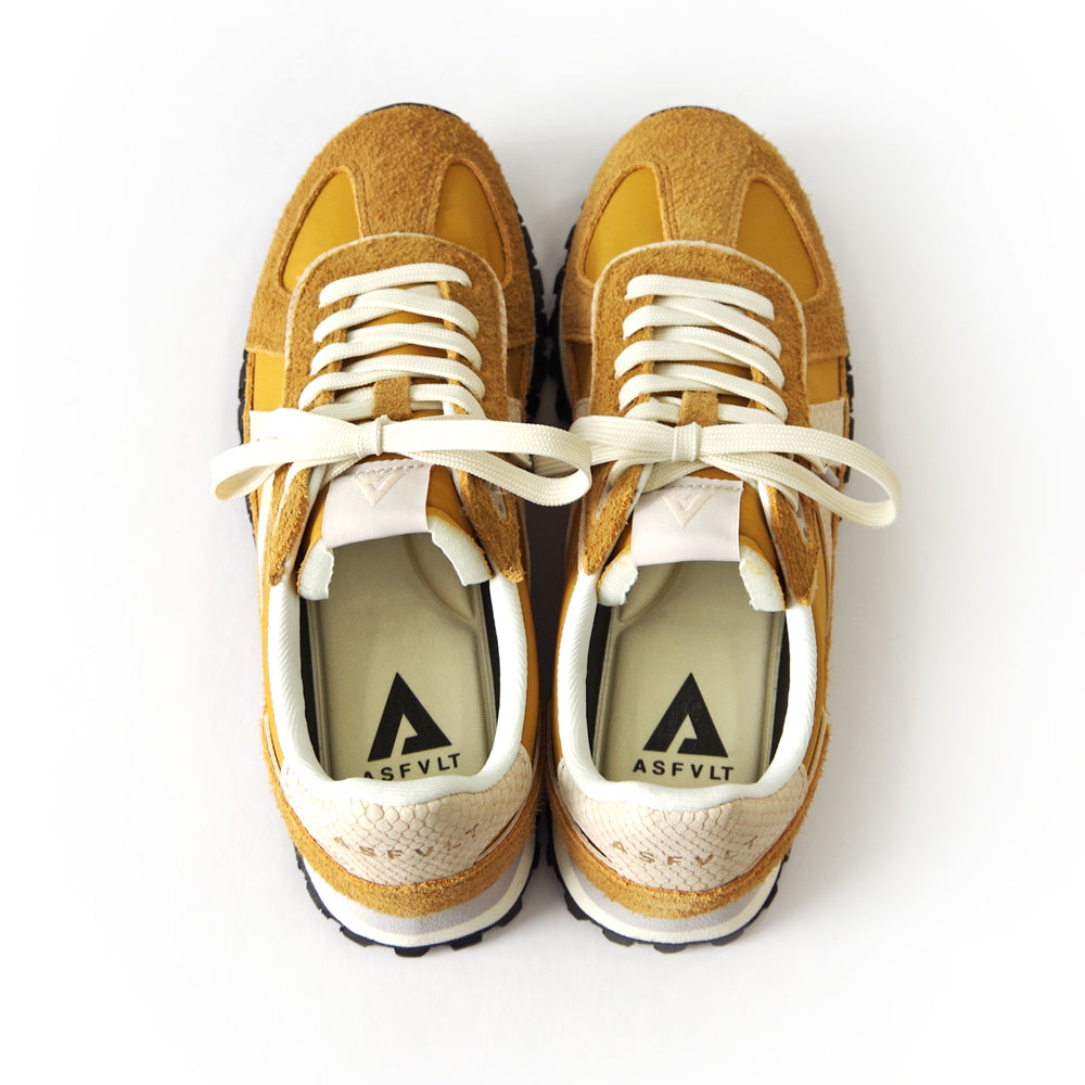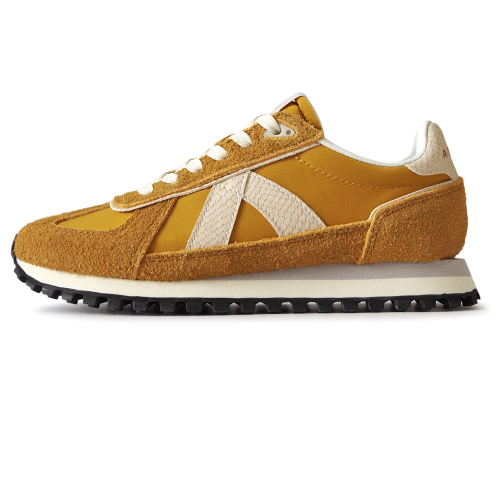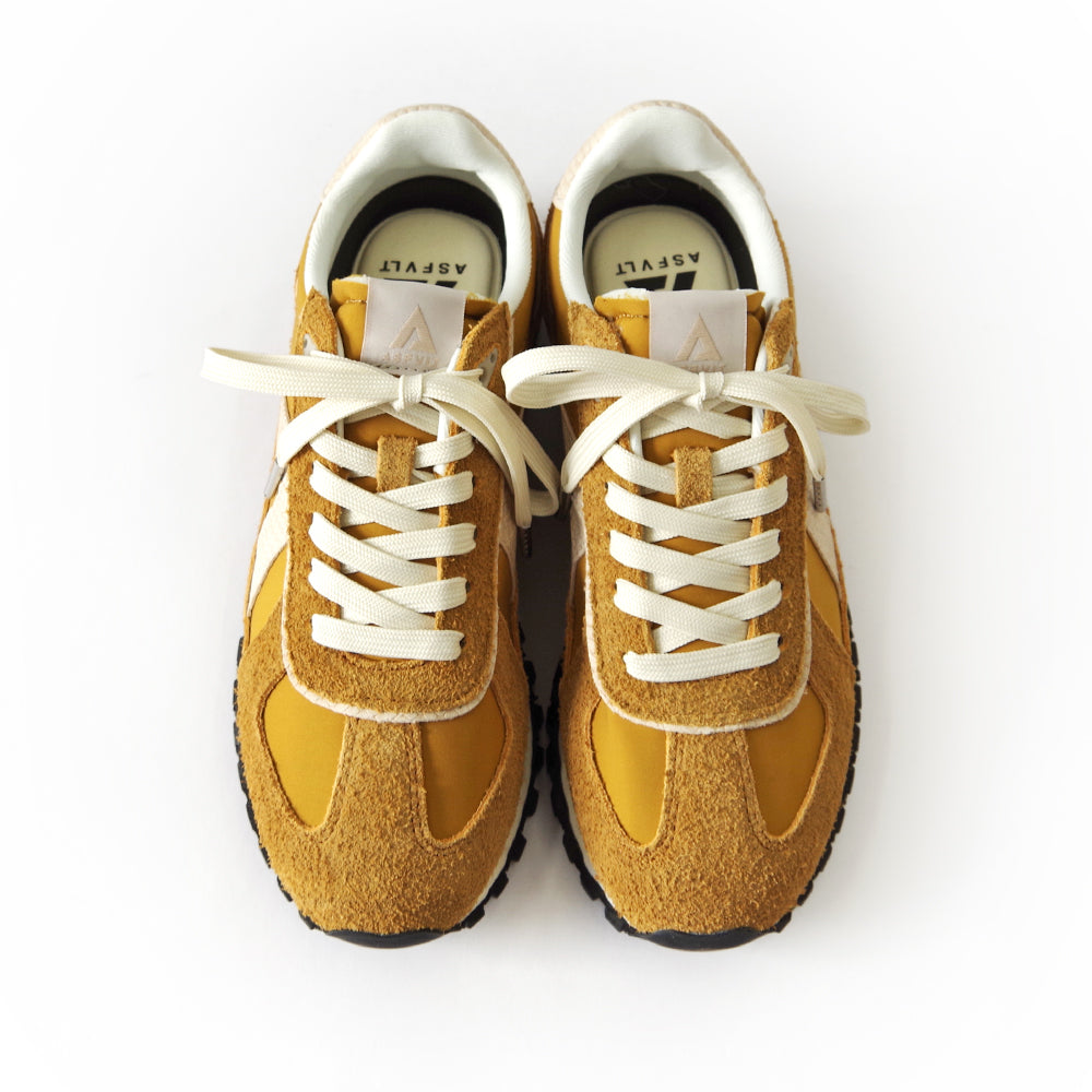 渋みのあるゴールドのような、イエローのような、マスタードカラーは足馴染みよく爽やかな印象に。