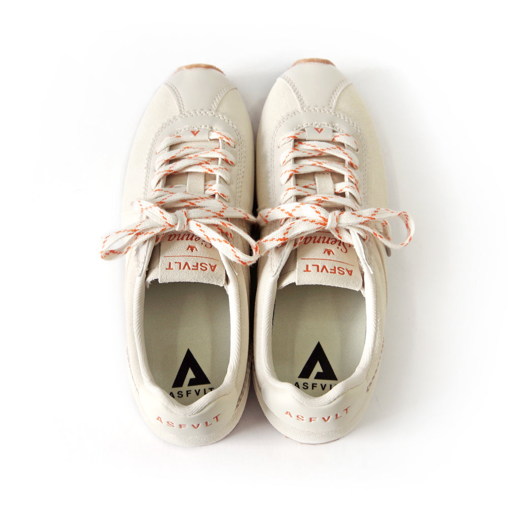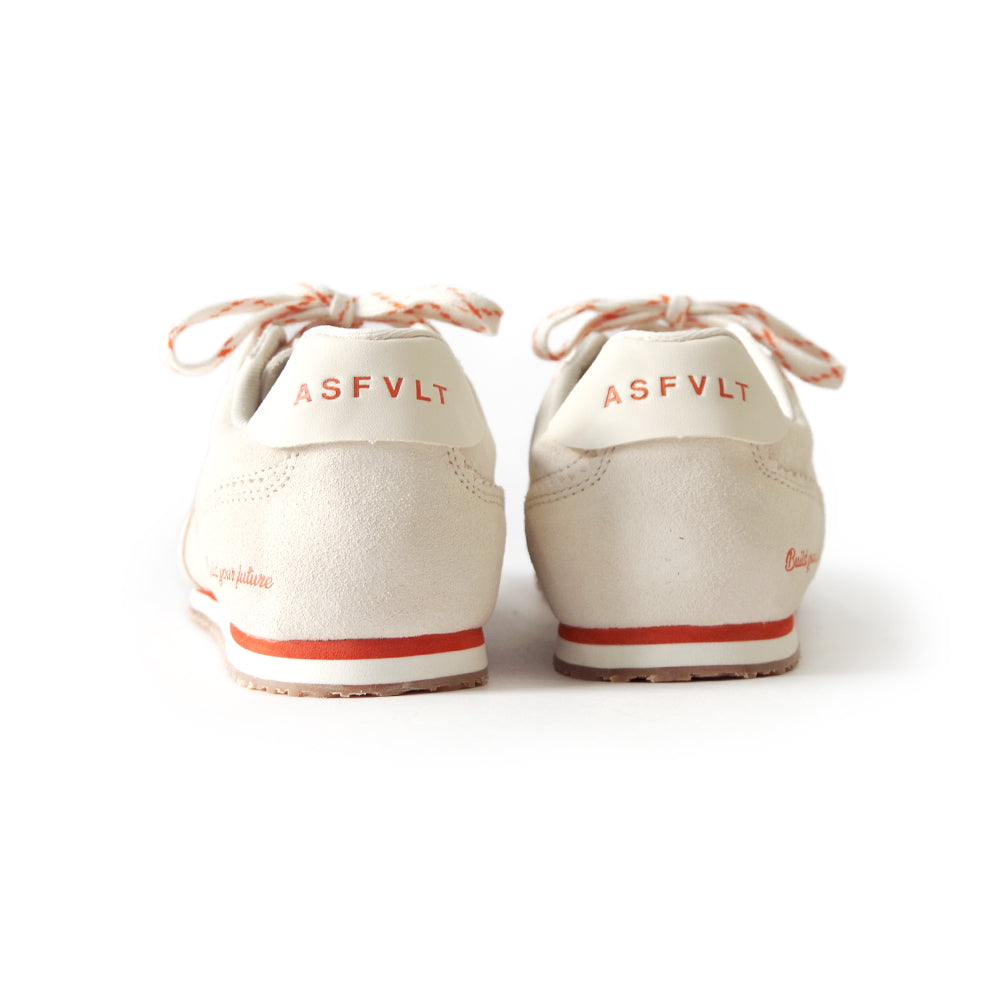 踵には同色の「BUILD YOUR FUTUR」の文字もプリントされ、シンプルなデザインながら細やかなこだわりが映えるアスファルトらしいデザインです。