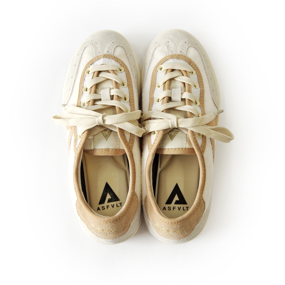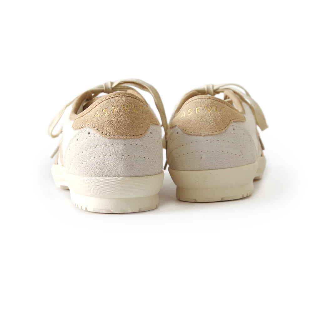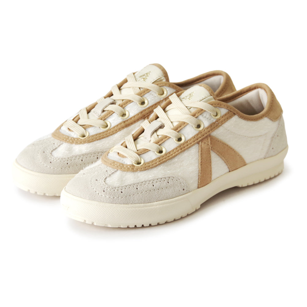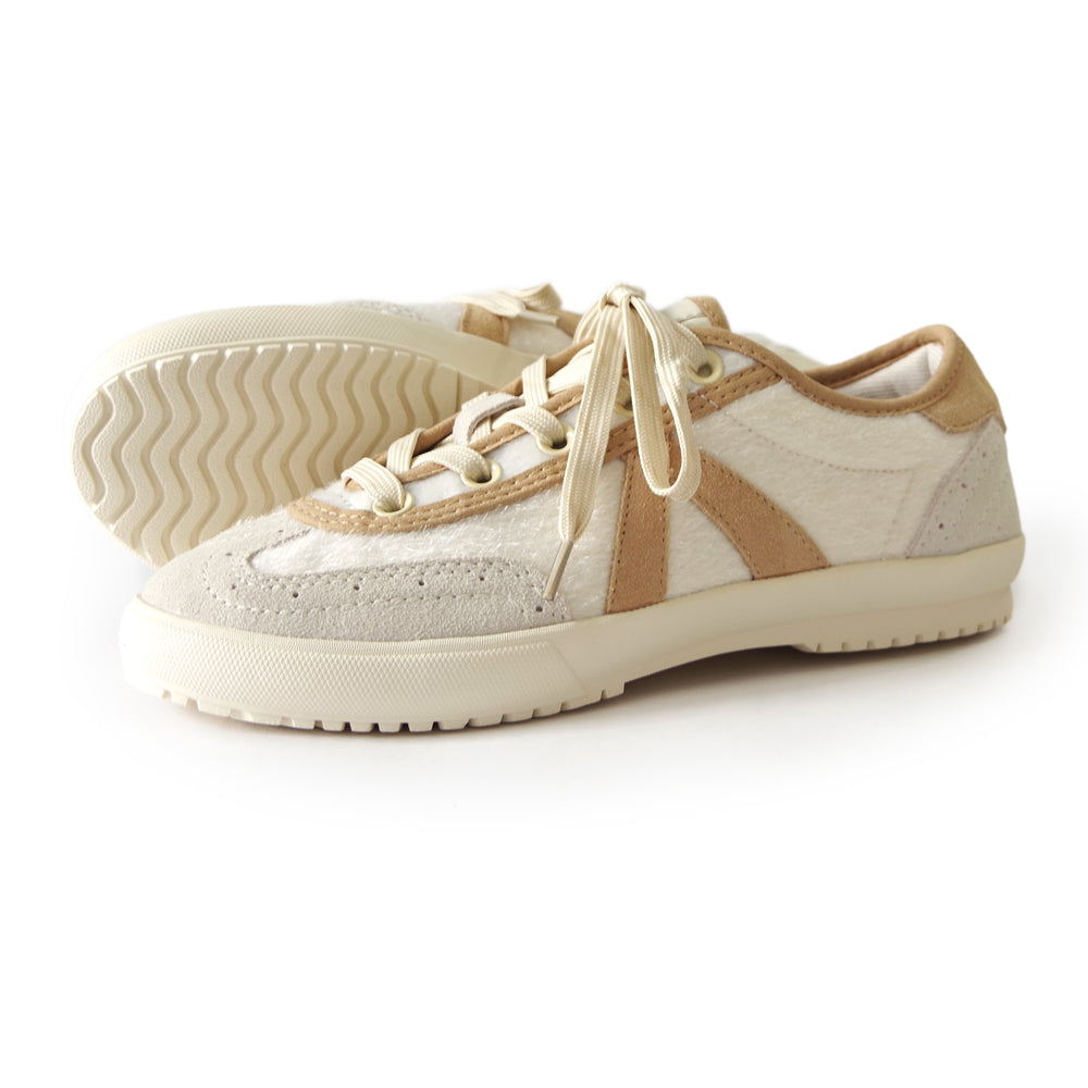 トゥキャップにはブローグ(穴飾り)デザインを施し、スニーカーでありながらどこかパンプスのような上品さを演出。